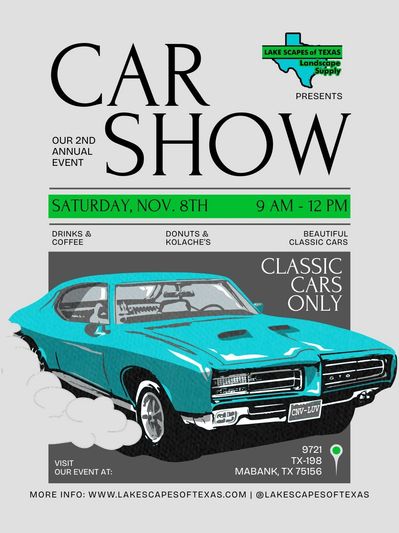 Join us for a morning of chrome, conversation, and community at our Classic Car Show hosted right here at Lake Scapes of Texas! Whether you're a car enthusiast or just love a good time with great people, this event is for you.
